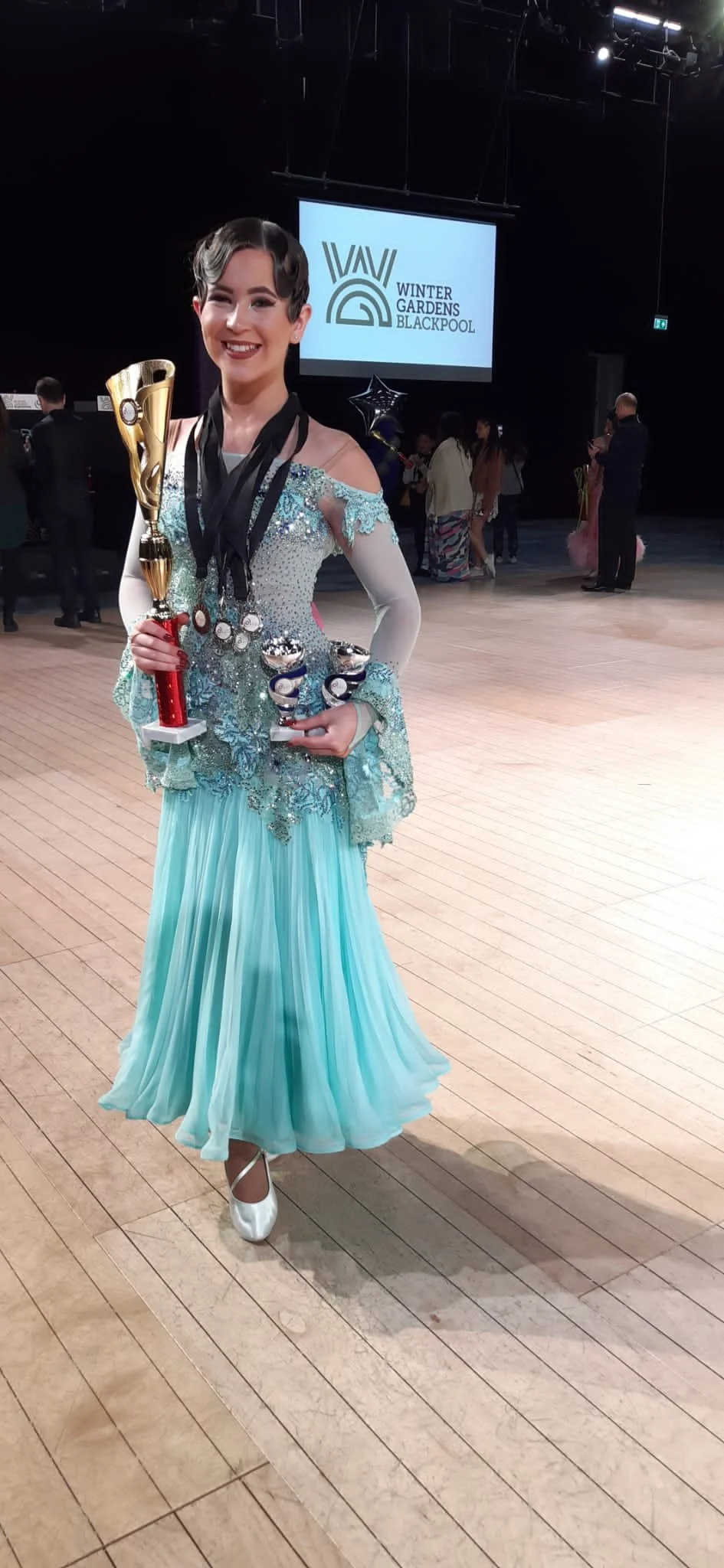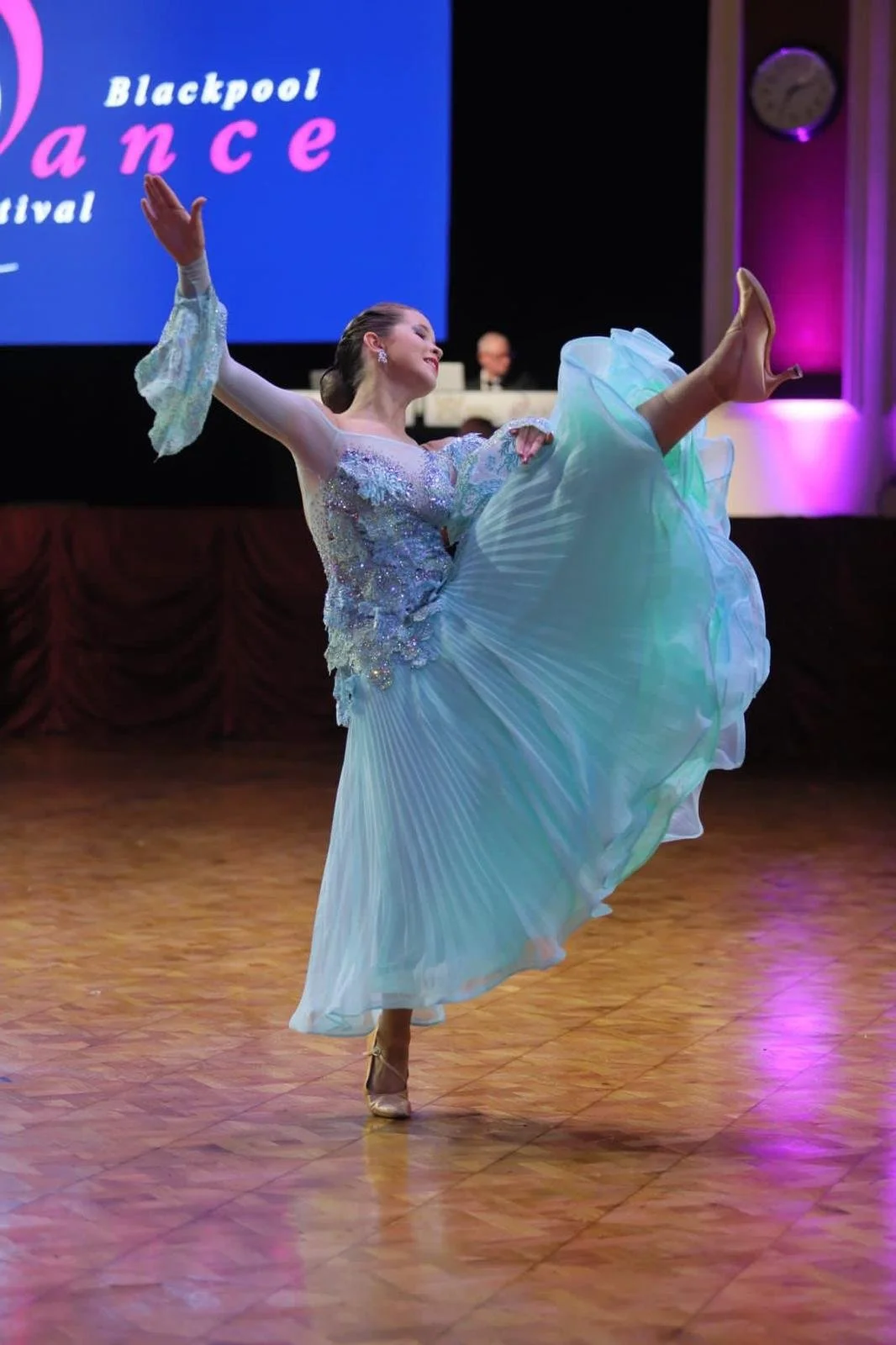 Rhiannon has had a busy few weeks recently. She started in Bournemouth with a training camp with her dance teachers and lectures from top level dancers. She then went to Blackpool for the Blackpool Junior Festival where she achieved 3rd place in the European ballroom U16 championships. She made finals in most of her other ballroom and Latin entries .
